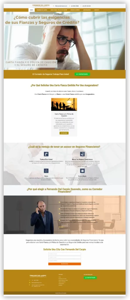 Fernando del Carpio tenía como objetivo principal desarrollar su página web con el fin de mostrar sus servicios de manera profesional, ofreciendo una descripción detallada de cada uno y brindando información completa acerca de su negocio. Su intención era permitir a los visitantes comprender plenamente los beneficios y características de sus servicios, con el objetivo de generar confianza y captar la atención de potenciales clientes interesados en sus propuestas.