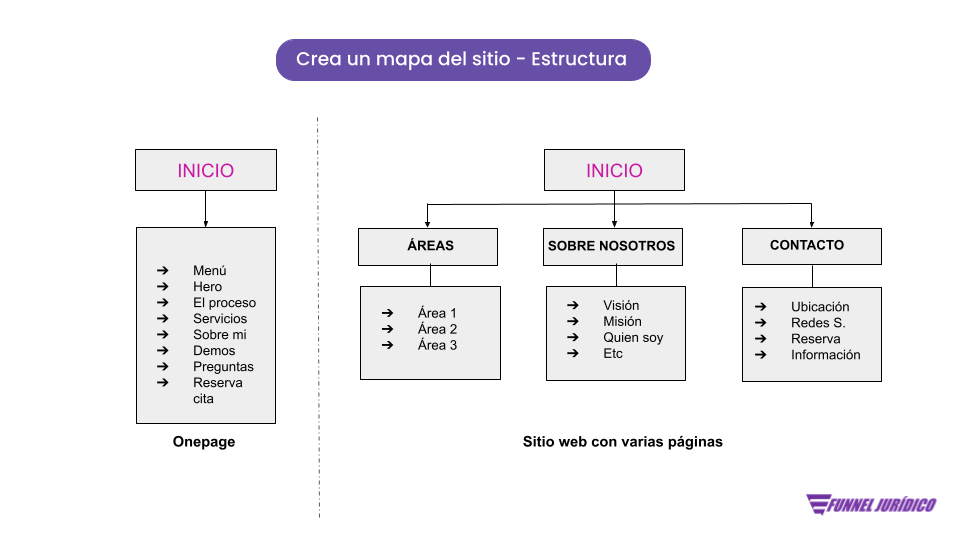 Ahora que ya tienes claro tus objetivos en el paso anterior ahora es momento de crear una estructura bien definida que facilite la organización y navegación de tu sitio web. Los visitantes deben poder encontrar fácilmente la información que buscan sin tener que hacer clic en múltiples enlaces o realizar búsquedas complicadas.